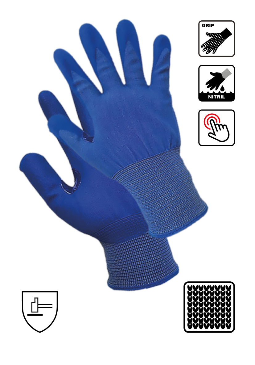 Rukavice s nitrilovým povrstvením na dlaňové části a